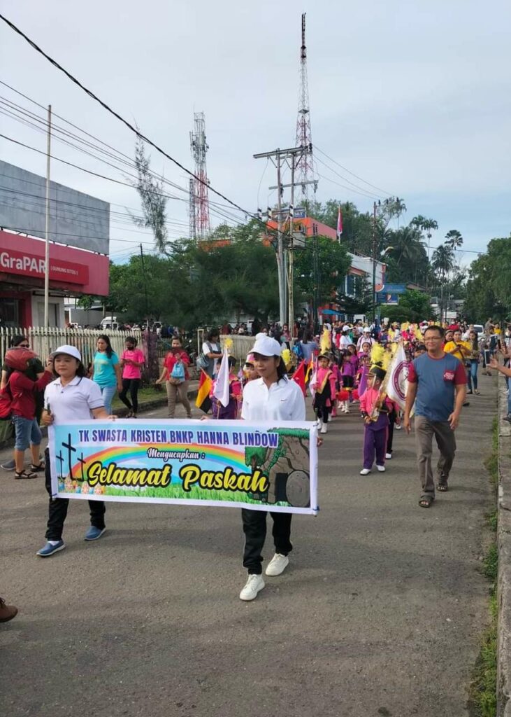 YAYASAN BNKP GUNUNGSITOLI – TK Hanna Blindow Gunungsitoli menggelar Karnaval Paskah 2022 dengan berjalan kaki di ikuti oleh seluruh siswa dan di dampingi oleh orangtua dan Guru. Acara ini sudah menjadi agenda tahunan yang dikemas secara baik.