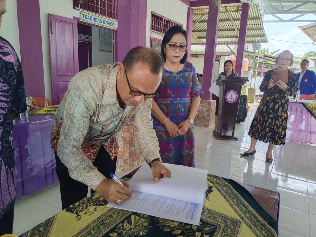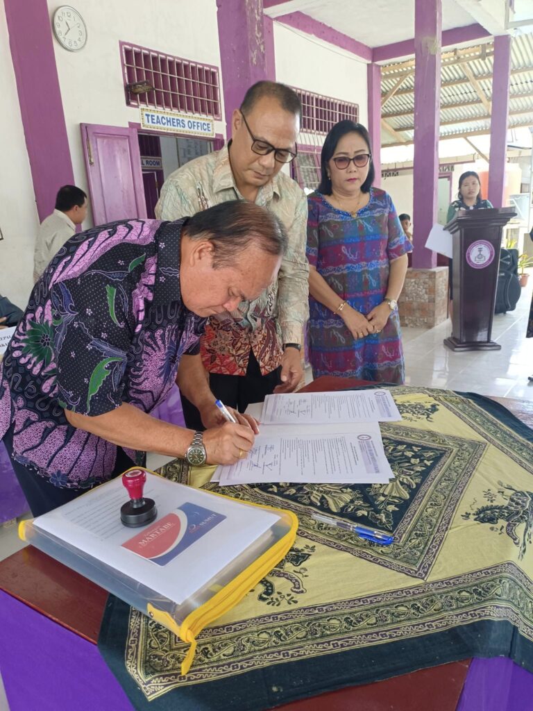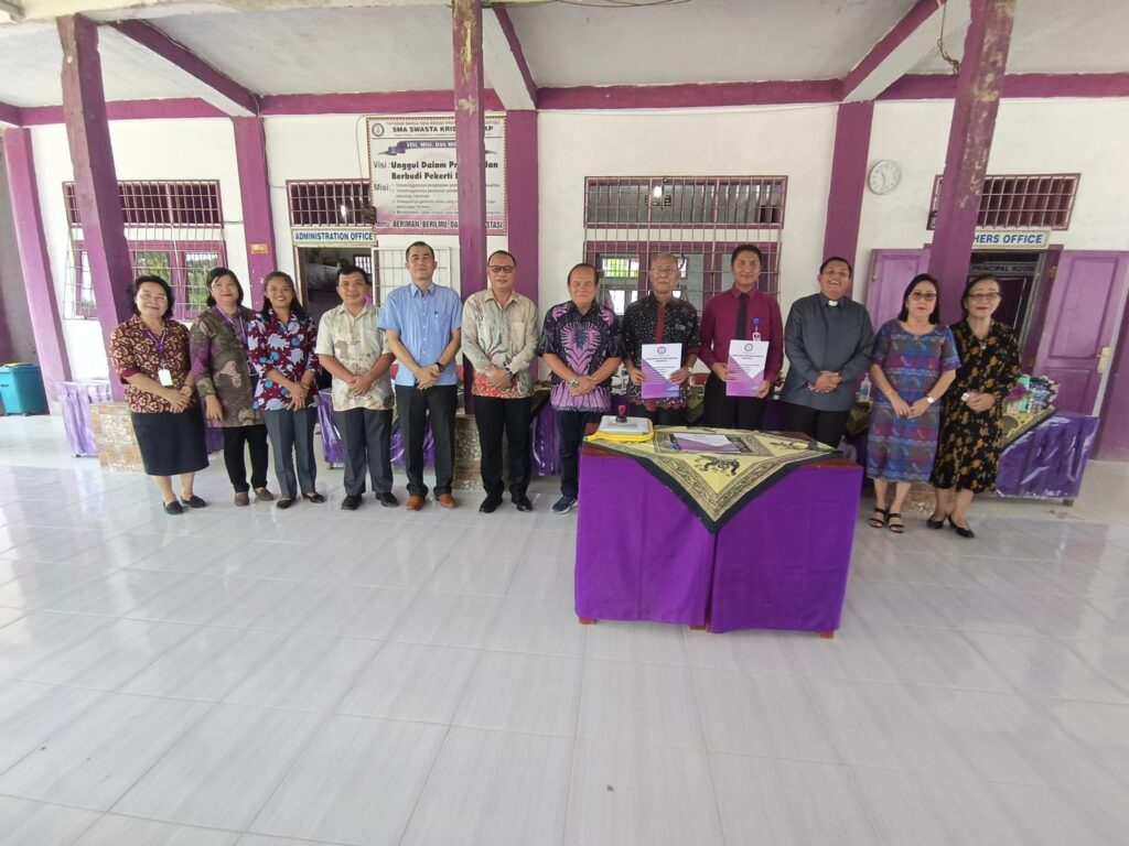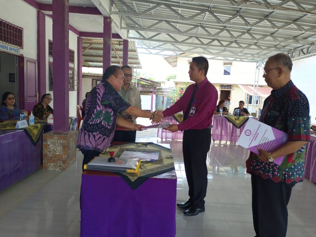 Acara Serah Terima Kepala SMA SWASTA KRISTEN BNKP GUNUNGSITOLI dari Dr. Faigiziduhu Bu’ulóló, M.Si kepada Eka Lestiaman Harefa, S.Si, Gr., M.Si.