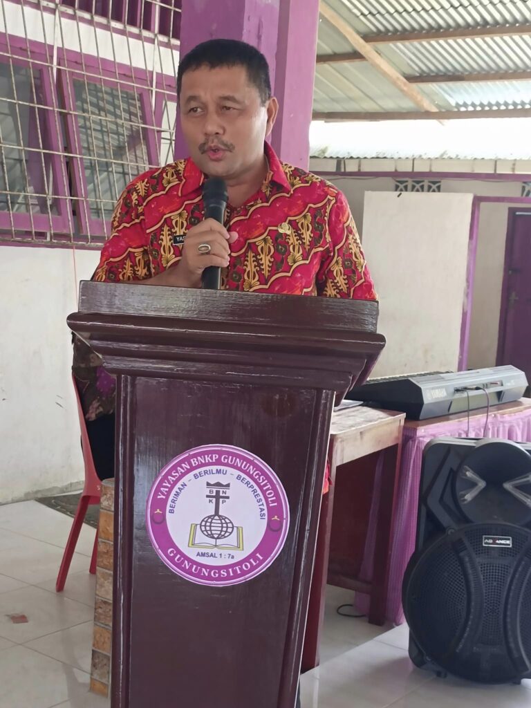 Sambutan Kepala Cabang Dinas Pendidikan Gunungsitoli Provinsi Sumatera Utara Yasokhi Hia, SE, Bimbingan dan Arahan Ketua Umum Yayasan Mayjend TNI (Purn) Drs. Christian Zebua, MM, Kata Penggembalaan oleh Kepala Departemen Didaskalia BNKP Pdt. Natalisman Telaumbanua, M.Th.